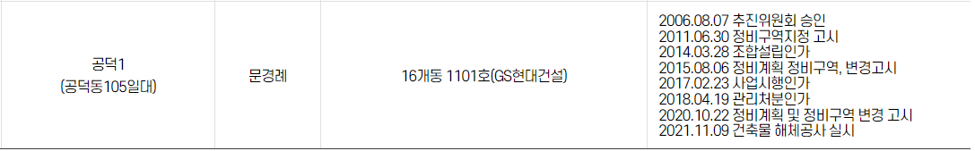 세 사업장중 공덕 1 구역은 해체공사까지 완료되었으나 시공사와 공사비 문제로 아직 착공이 진행되지는 않았고 공덕 6 구역은 조합설립 이후 건축위원회 심의를 받았고 아직 시공사는 선정되지 않았습니다.